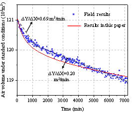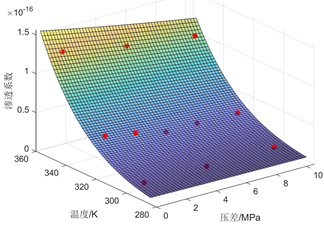 研发了柔性密封材料的高压渗透试验装置,利用该装置进行了多种高分子密封材料的高压渗透试验,初步选定了丁基橡胶作为压气储能地下洞室密封层的优选材料,并建立了丁基橡胶渗透系数随压力和温度变化的演化方程(图5)。申请人团考虑了空气在内衬-密封层界面的累积效应,提出了相应的压气储能内衬洞室密封性计算新方法,得到了隧道式洞室空气泄漏的新规律,如图6所示。