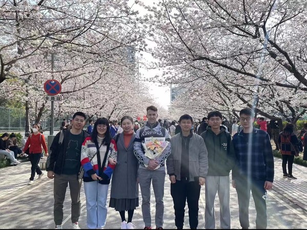 团队于同济大学樱花大道合影
